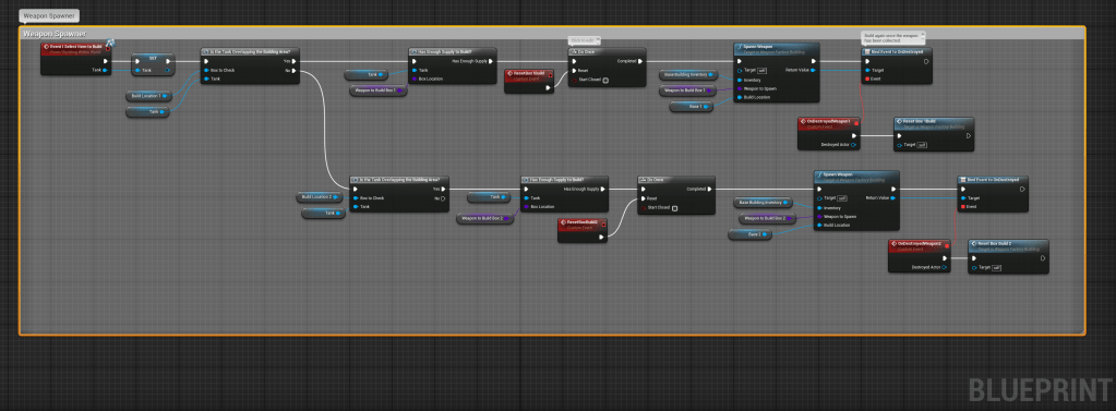 For a University project, we were tasked to create a game featuring tanks. A long time desire of mine was to create a game in the vein of “Command and Conquer: Renegade”: where two teams fight against each other by using collected materials to create weapons and bases. The primary goal for the module was to create blueprints with adherence to Object Orientation practices.